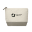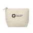 This cosmetic bag is made from cotton and features a coloured bottom with a matching zipper puller.